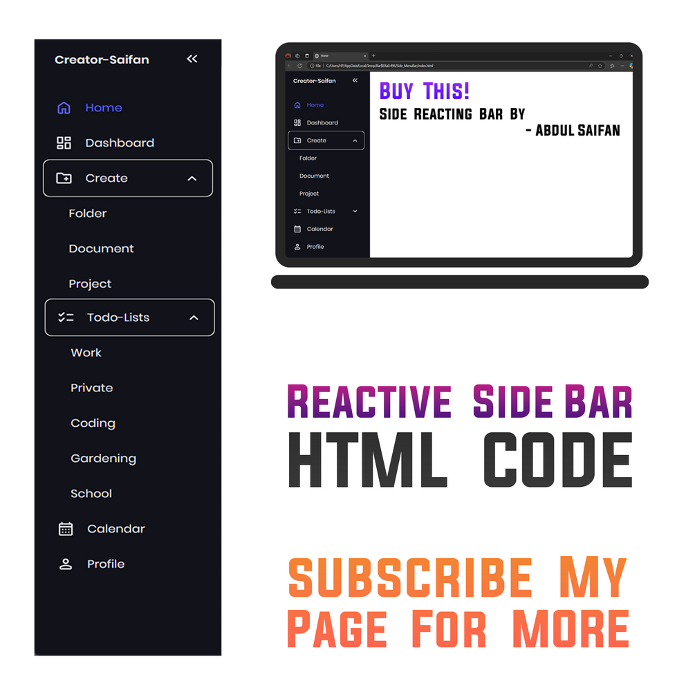 WEB Reactive Side Menu Bar | HTML Code